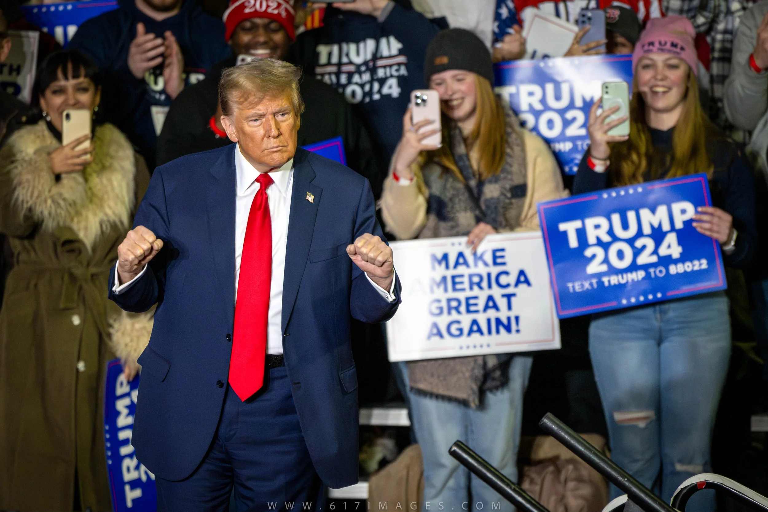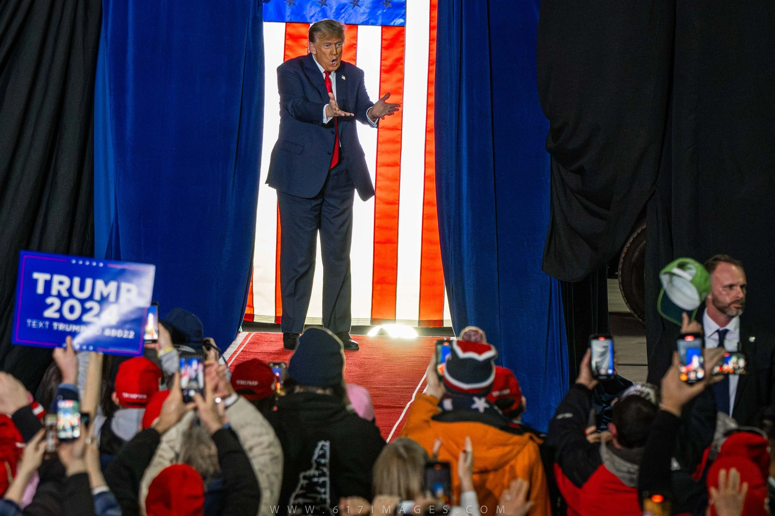 Trump’s rally stage with his supporters in Manchester NH.