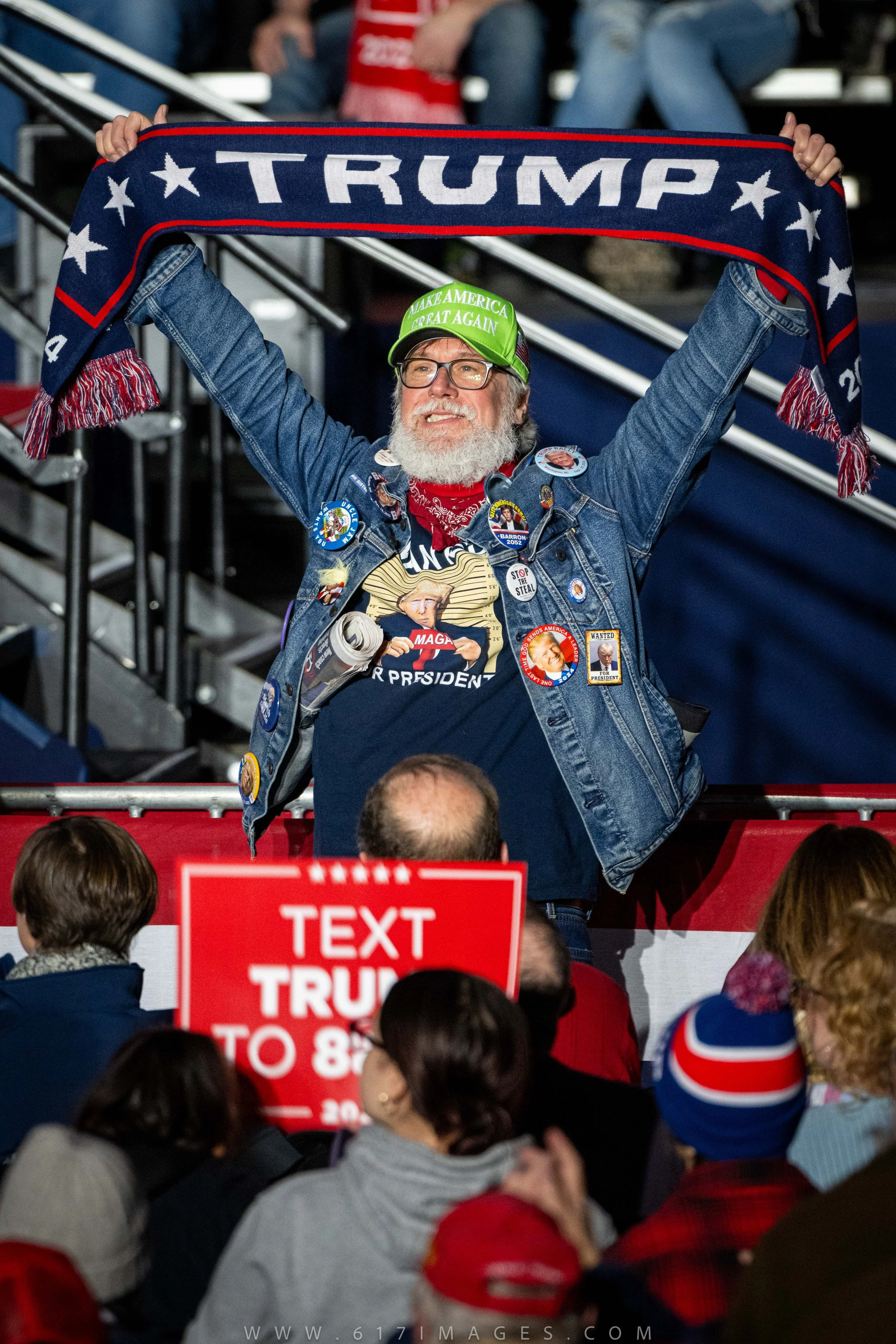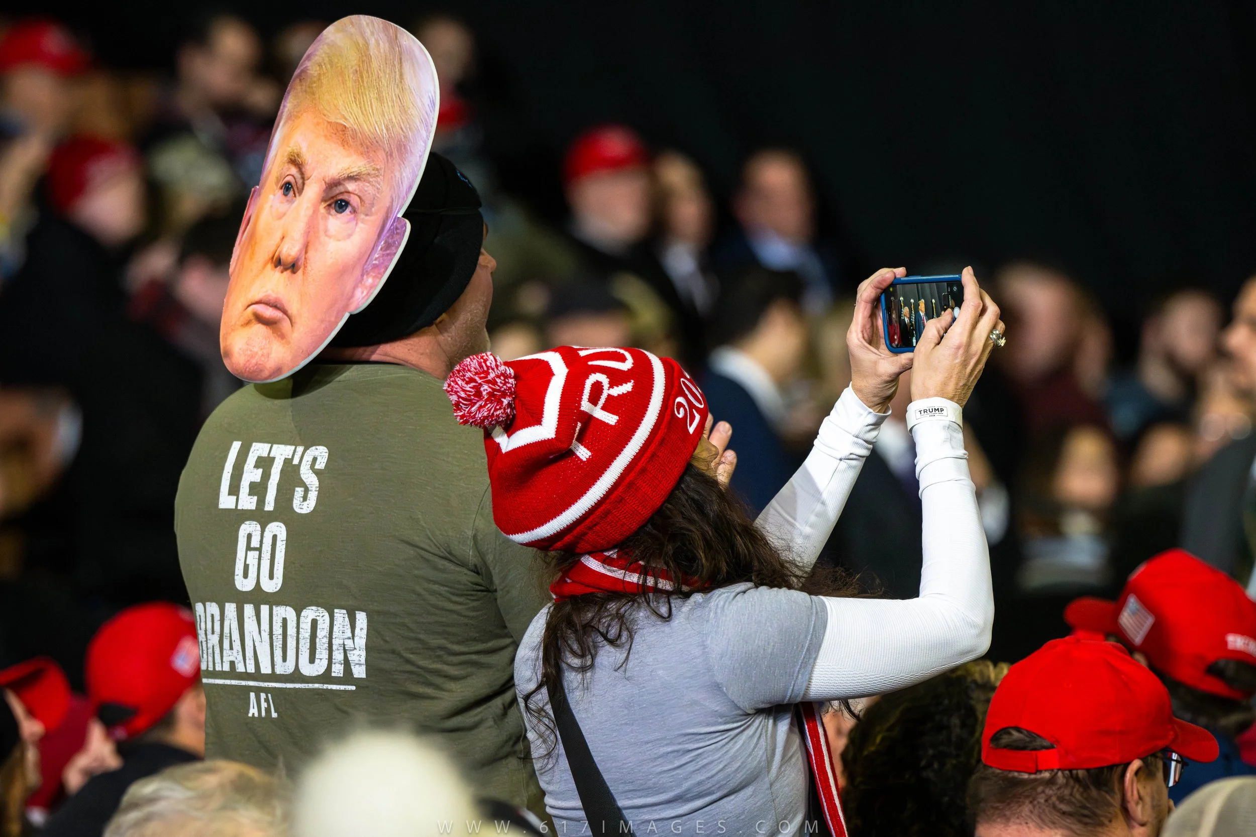 Supporters of President Trump show their excitement as he greets them on stage.